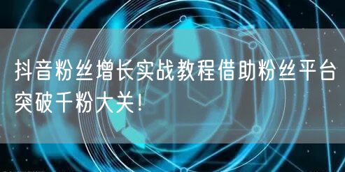 抖音作为当下最热门的社交媒体平台之一,拥有庞大的用户群体和巨大的流量。对于希望在抖音上建立个人品牌或推广产品的用户来说,粉丝数量是关键。本文将为大家分享一些关于如何借助粉丝平台突破千粉大关的实战教程。
