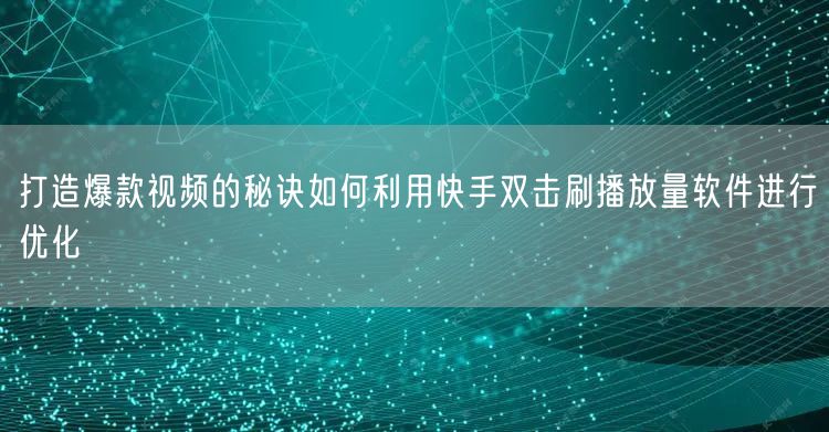 随着移动互联网的普及,短视频已成为大众获取信息、娱乐消遣的重要途径。快手作为短视频领域的佼佼者,吸引了众多内容创作者争相入驻。如何打造爆款视频,提升视频播放量和影响力,成为每个快手创作者关注的焦点。本文将揭秘打造爆款视频的秘诀,探讨如何利用快手双击刷播放量软件进行优化。