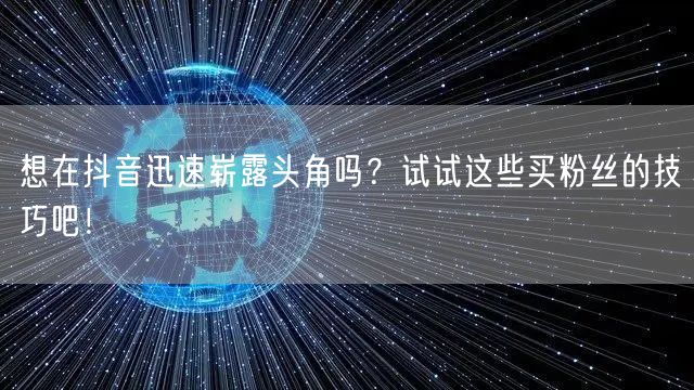 通过本文介绍的买粉丝技巧,你可以快速提高在抖音上的影响力,吸引更多关注。但记住,买粉丝只是手段之一,真正重要的是提供优质内容,与粉丝保持良好的互动关系。只有这样,你才能在抖音上真正崭露头角,成为一位备受瞩目的抖音达人!