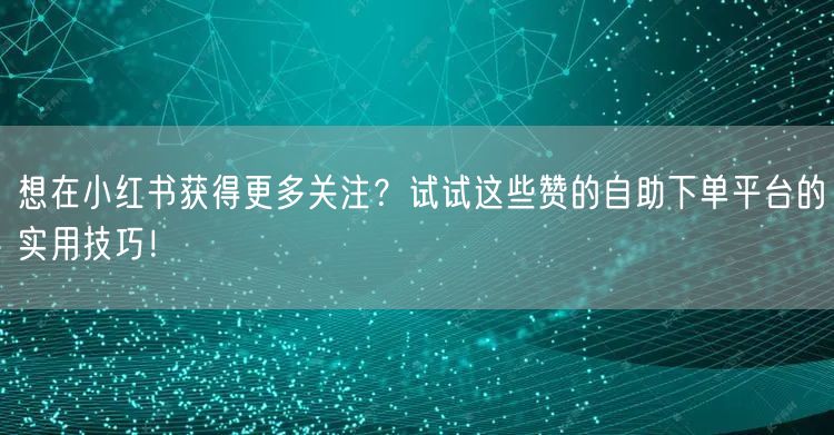 结合自助下单平台和精心制作的内容,你将更容易在小红书上脱颖而出,吸引更多关注,提升社交媒体影响力。赶快尝试这些实用技巧,让你的小红书之旅更加精彩吧!